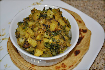 Serve them hot together at dinner with some cold dahi in a bowl. Super yummy !!!Even kids love it as even though you are giving green leaves, you are mixing it with potatoes and everyone loves potatoes.